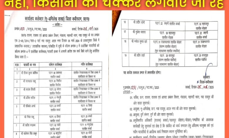 Read More »कवर्धा। जिले में कलेक्टर साहब ने 26 जून 2025 को लंबे समय से जमे पटवारियों का ट्रांसफर आदेश जारी किया।…