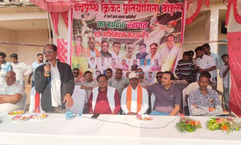 बोड़ला -नगर पंचायत बोड़ला में आज इंद्रप्रस्थ क्रिकेट प्रतियोगिता का शानदार शुभारंभ हुआ। कार्यक्रम में मुख्य अतिथि के रूप में नगर पंचायत अध्यक्ष विजय पाटिल उपस्थित रहे, जबकि अध्यक्षता विदेशी राम धुर्वे, पूर्व जिला पंचायत अध्यक्ष, ने की।