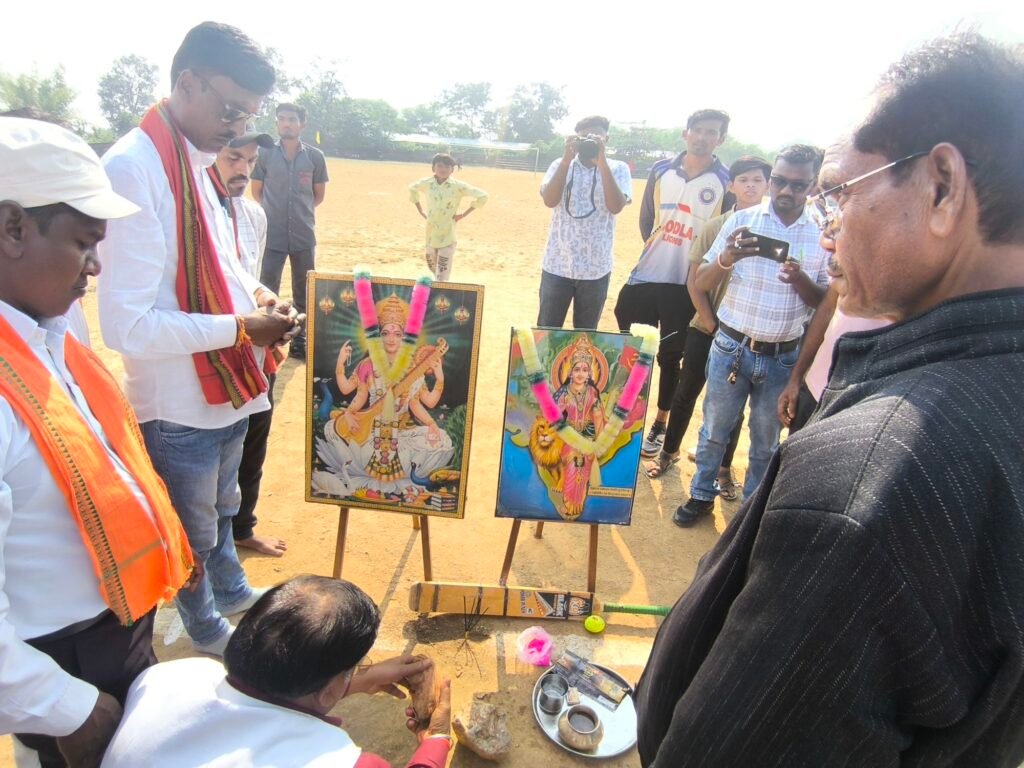 क्रिकेट प्रतियोगिता का शुभारंभ अतिथियों द्वारा क्रिकेट मैदान में पूजा-अर्चना कर किया गया। इसके बाद अतिथियों ने दोनों टीमों के खिलाड़ियों से परिचय प्राप्त कर मैच का औपचारिक आगाज़ किया।