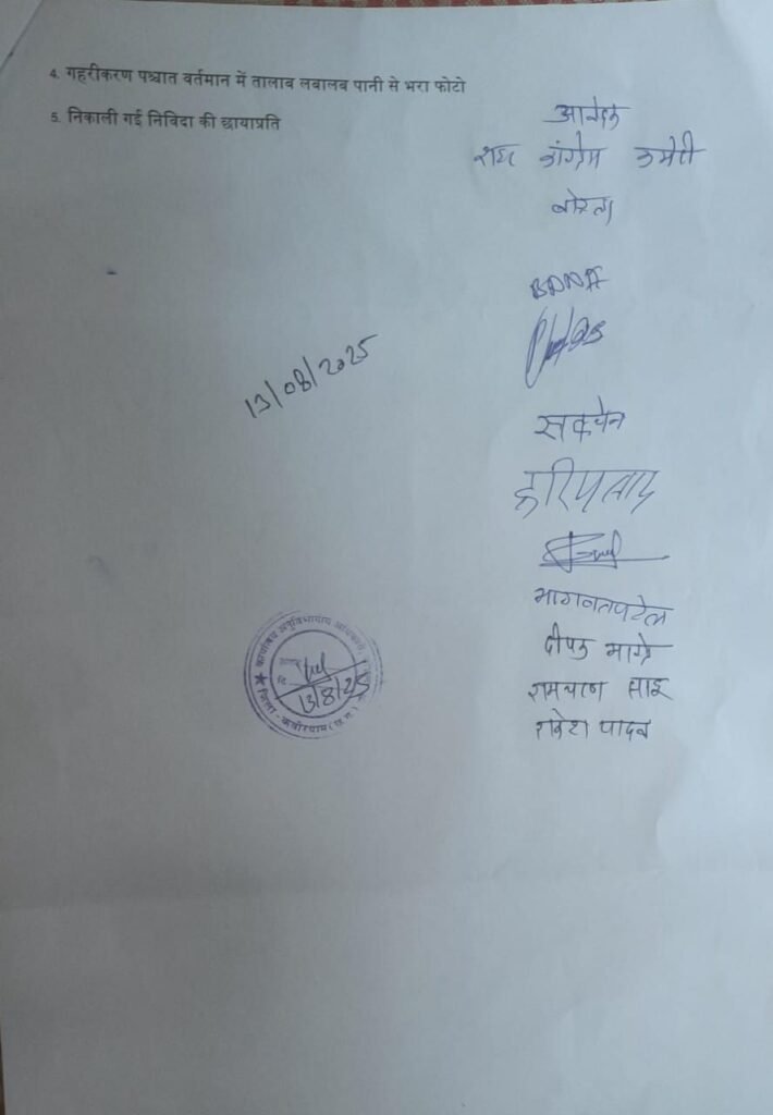 तालाब खनन का कार्य बरसात के पूर्व किया जा चुका है जबकि अभी तालाब गहरीकरण के नाम पर 9.95 लाख रुपए का टेंडर लगाया गया है जीरो गिट्टी प्रदाय कार्य का काम भी हो चुका है और उसके नाम पर अभी 4.12 लाख रुपए का टेंडर लगाया गया है इसके अलावा मंच निर्माण कार्य 2.96 लाख, विभिन्न विकास कार्य 3.69 लाख, शौचालय मरम्मत कार्य 0.70 लाख, भवन मरम्मत कार्य 0.48 लाख, कच्ची नाली निर्माण कार्य 0.93 लाख, पुताई कार्य 0.70 लाख, इन समस्त कार्यों की टेंडर निकाली गई है जिसमें से अधिकांश कार्य बिना टेंडर के ही पूर्व में कराई जा चुकी है समस्त कार्य जो हो चुका है जिसकी टेंडर निकाली गई है उन समस्त टेंडर को निरस्त करने की मांग शहर कांग्रेस कमेटी द्वारा की गई टेंडर निरस्त न करने की स्थिति में नेशनल हाइवे में चक्काजाम किया जाएगा जिसकी समस्त जिम्मेदारी शासन प्रशासन की होगी ज्ञापन कार्यक्रम में रामचरण साहू भागवत पटेल मुखनि निर्मलकर दीपक मागरे विसर्जन धुर्वे बंटी खान राकेश यादव पूरन मानिकपुरी हरिप्रसाद बंजारे प्रमोद यादव इत्यादि कांग्रेस कार्यकर्ता मौजूद थे