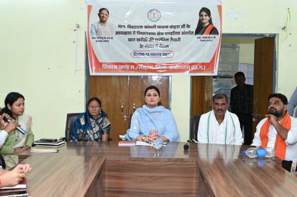 पंडरिया विधायक भावना बोहरा ने जनपद पंचायत लोहरा में अधिकारियों के साथ बैठक कर धान खरीदी की तैयारियों का जायजा लिया