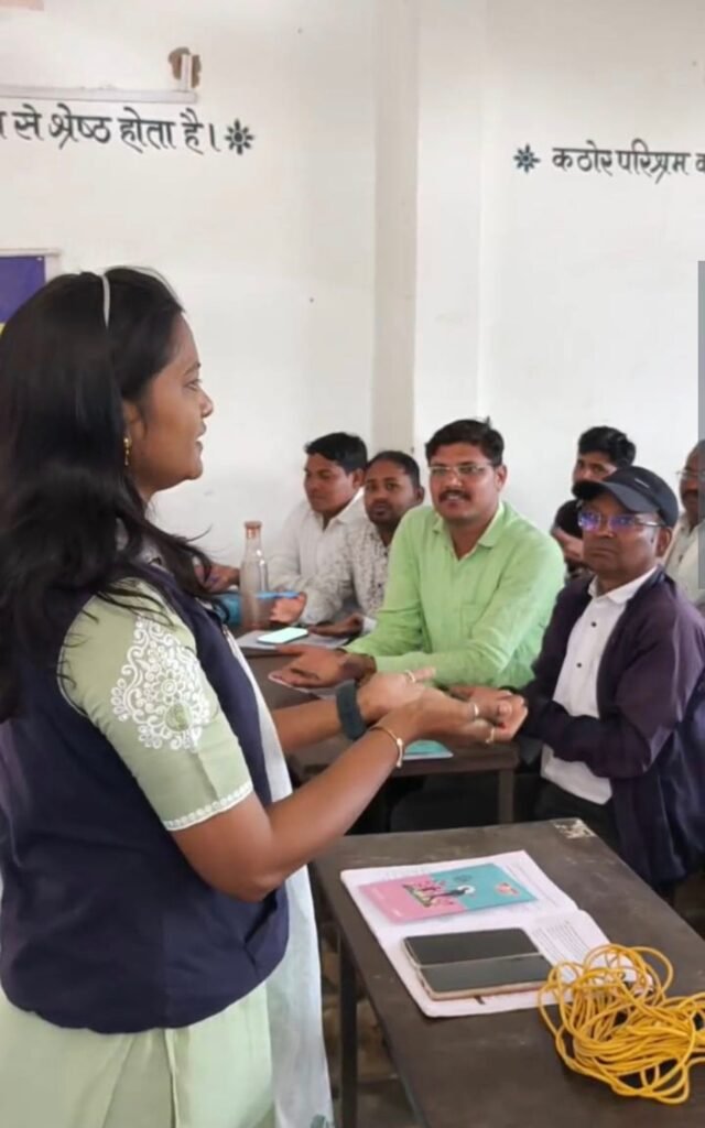 प्रशिक्षण के दौरान मौखिक भाषा विकास के अंतर्गत शिक्षक मातृभाषा में बच्चों के साथ चित्रों पर चर्चा, अनुभव साझा करना, कहानी सुनाना, नाटक एवं पात्र अभिनय जैसी गतिविधियों का अभ्यास कर रहे हैं। इससे बच्चों की संवाद क्षमता, अभिव्यक्ति और समझ में वृद्धि होगी।